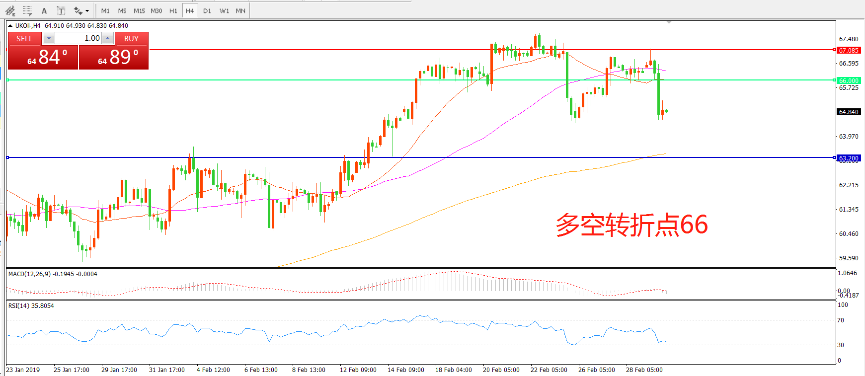 交易策略:在66.00之下看跌,目标63.00     61.00