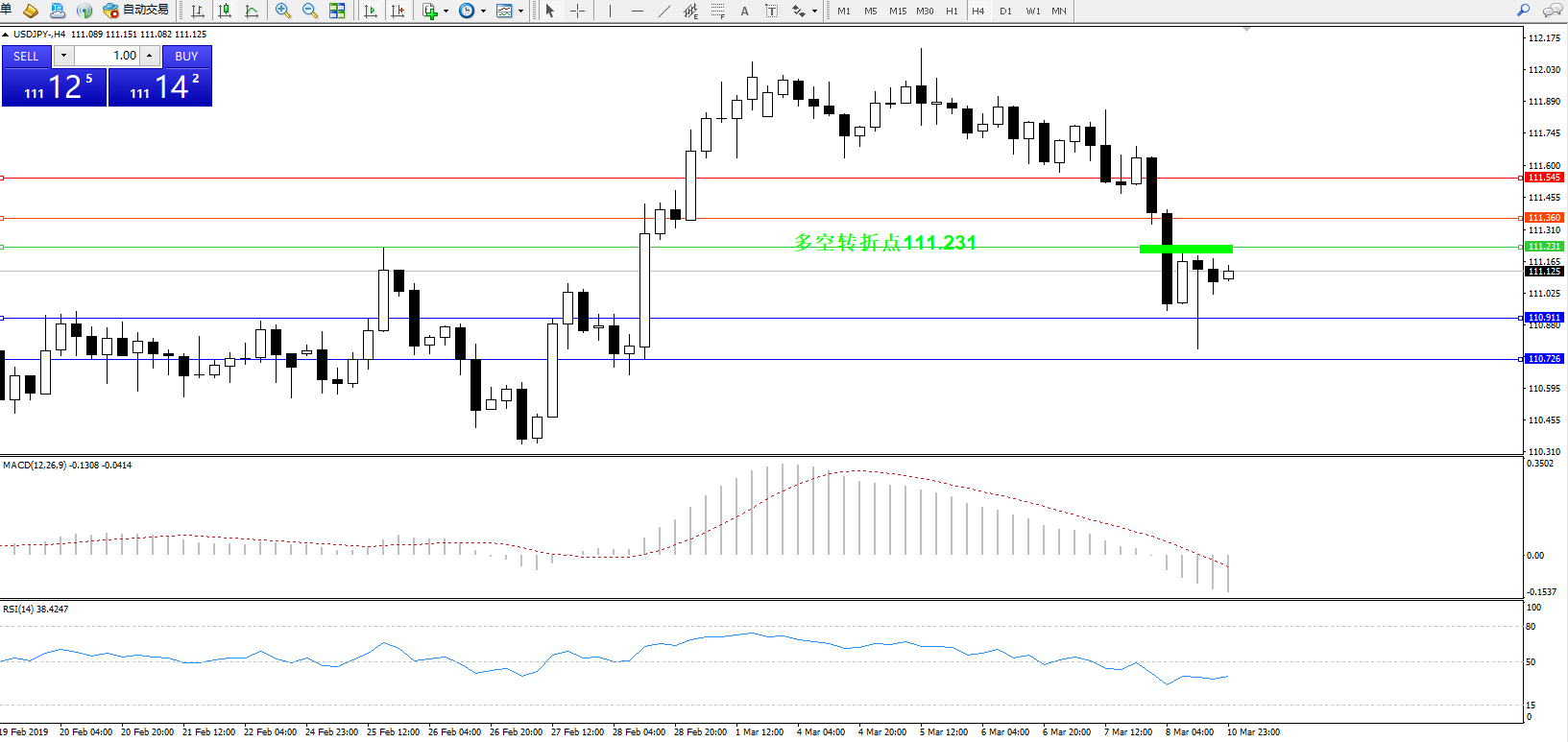 交易策略:111.231下方看跌,目标110.911110.726