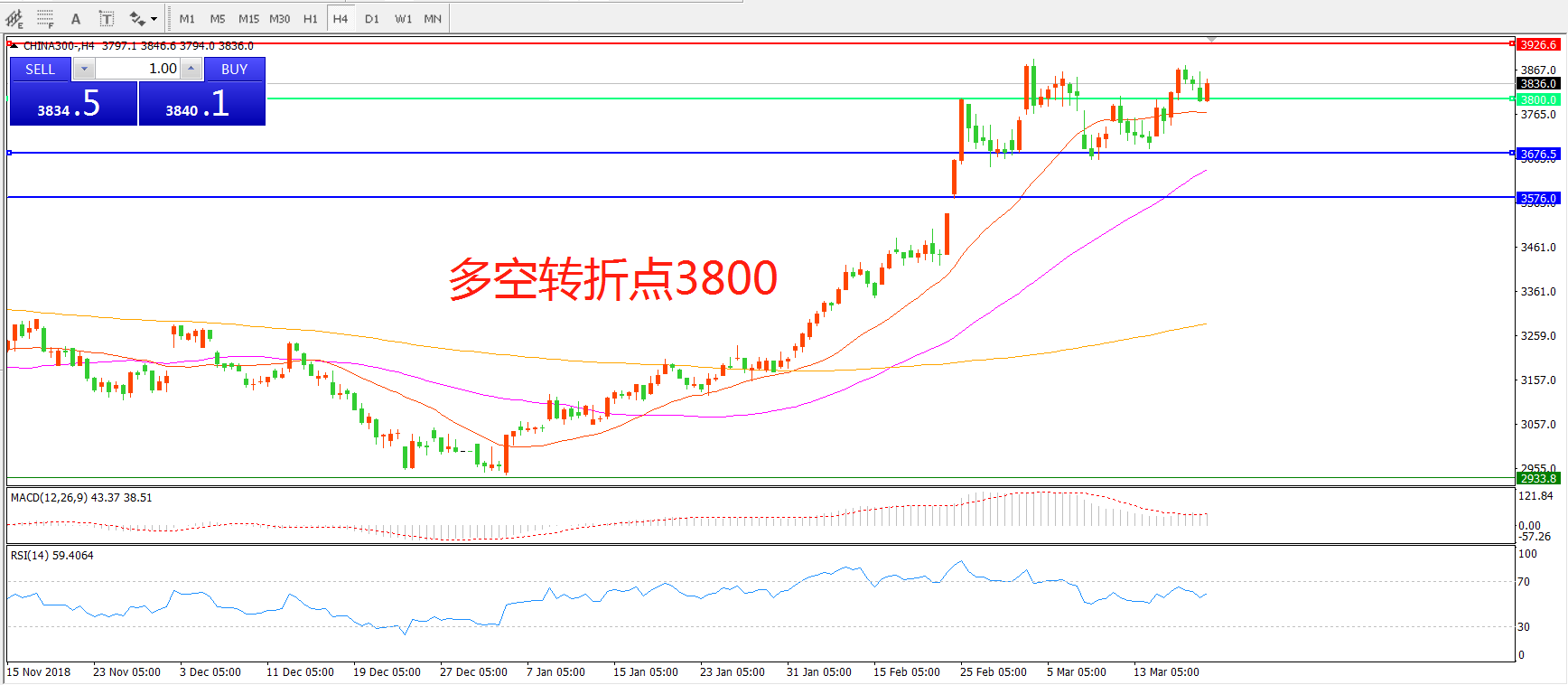 多空转折点:3800.00