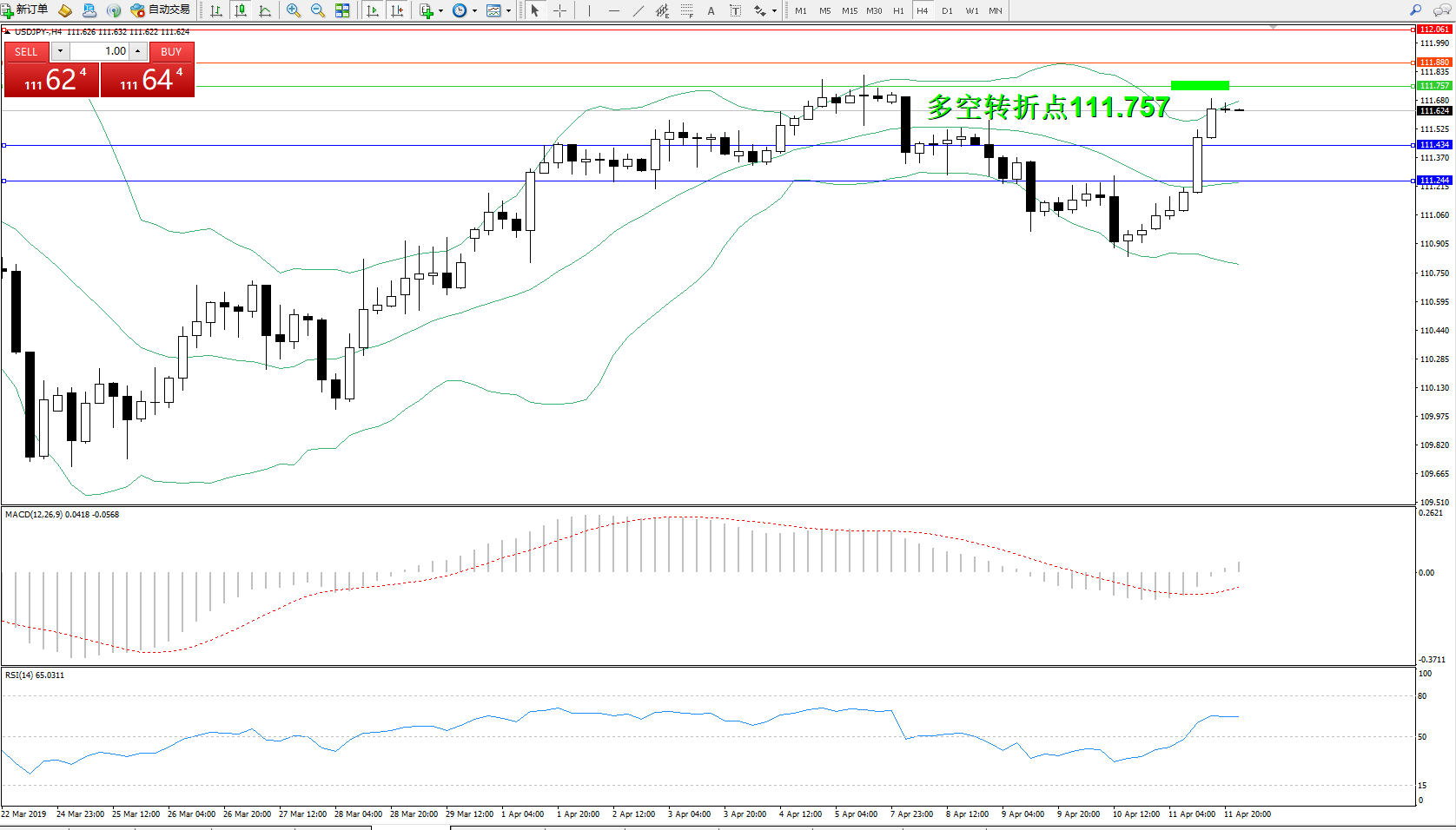 交易策略:111.757下方看跌,目标111.434111.244
