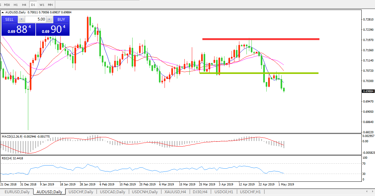 澳洲联邦银行:澳元兑美元下跌,因油价下滑; 美盘阶段,澳元兑美元技术性收低于0.7000,这是一个看空信号,且有可能进一步下跌; 该货币对下跌的主要原因是油价下跌和美元坚挺;美国原油库存升至两年来的最高水平,原油价格下跌2.8%至一个月以来的最低水平;俄罗斯原油去库存目标不及预期,美国对伊朗石油出口的制裁措施缺乏信心,威胁委内瑞拉石油供应的政治风险似乎已经消退