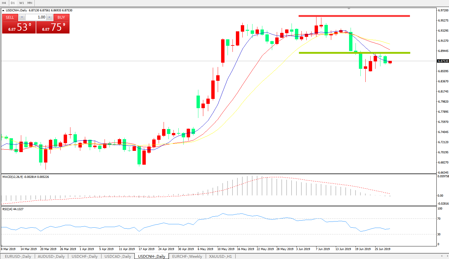 备选策略: 6.8880之上,看涨,目标价位为6.9600,然后为6.9800