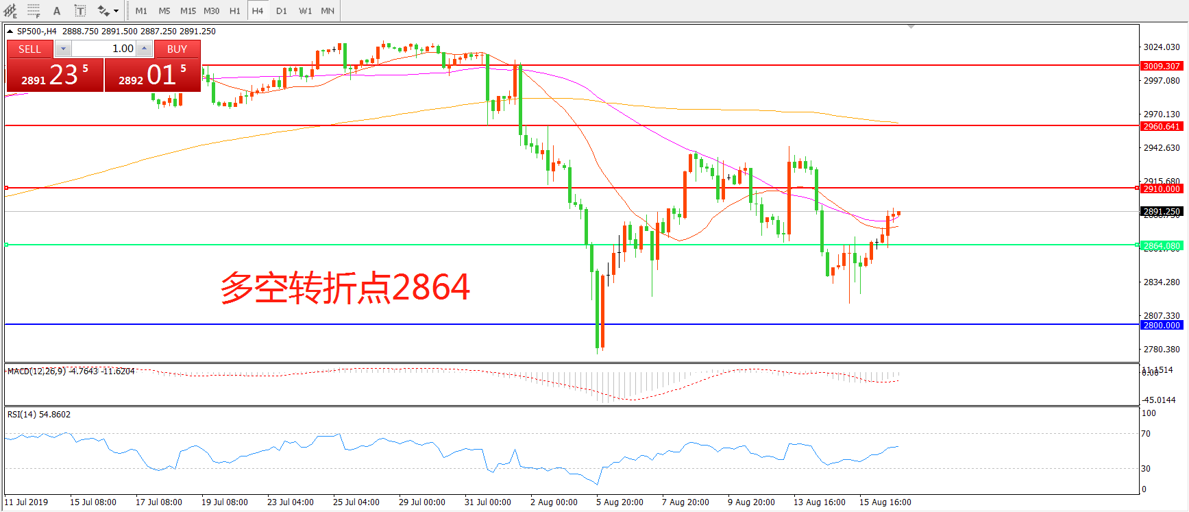 多空转折点:2864.00