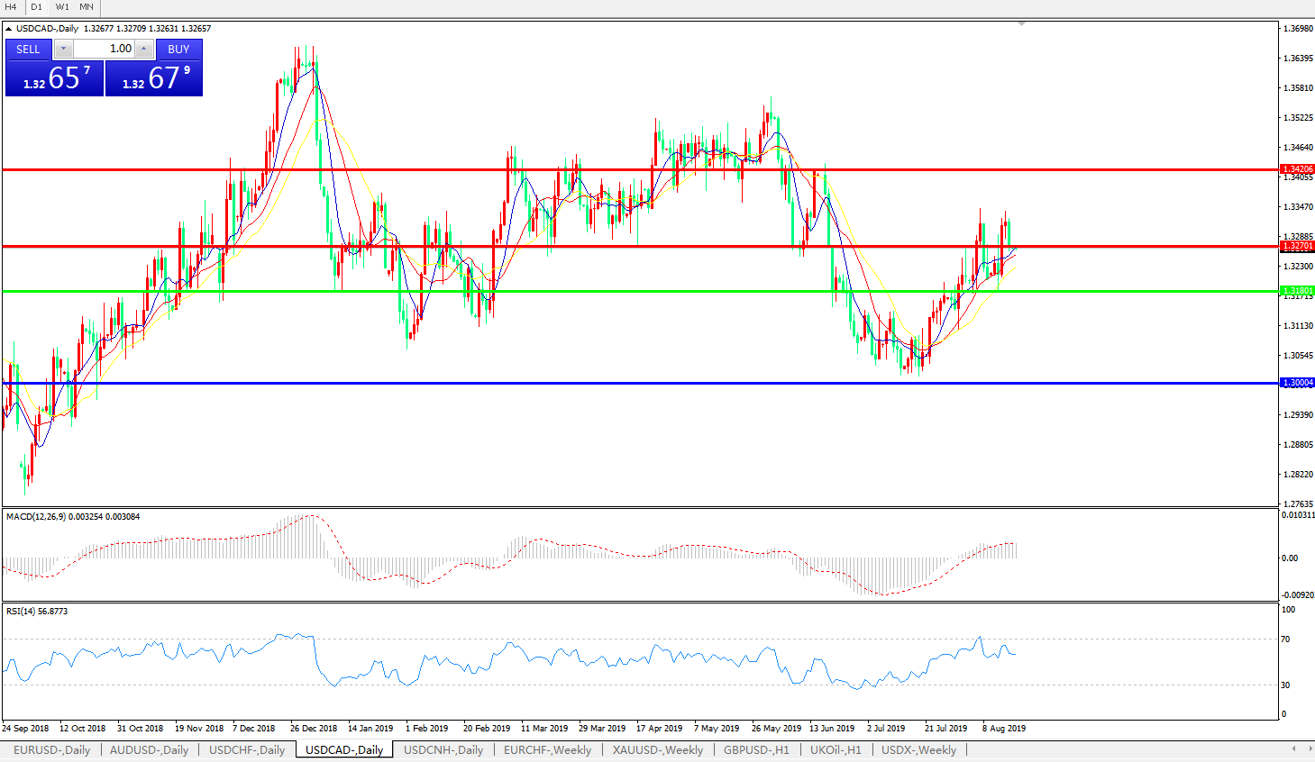 技术面简析:日线图均线整体呈发散上攻态势,汇价周五回踩1.3270关口,MACD运行于0轴上方且动能柱量能维持,RSI呈整理震荡态势,预计汇价短期汇价料将进一步上行,试探1.34附近压制。