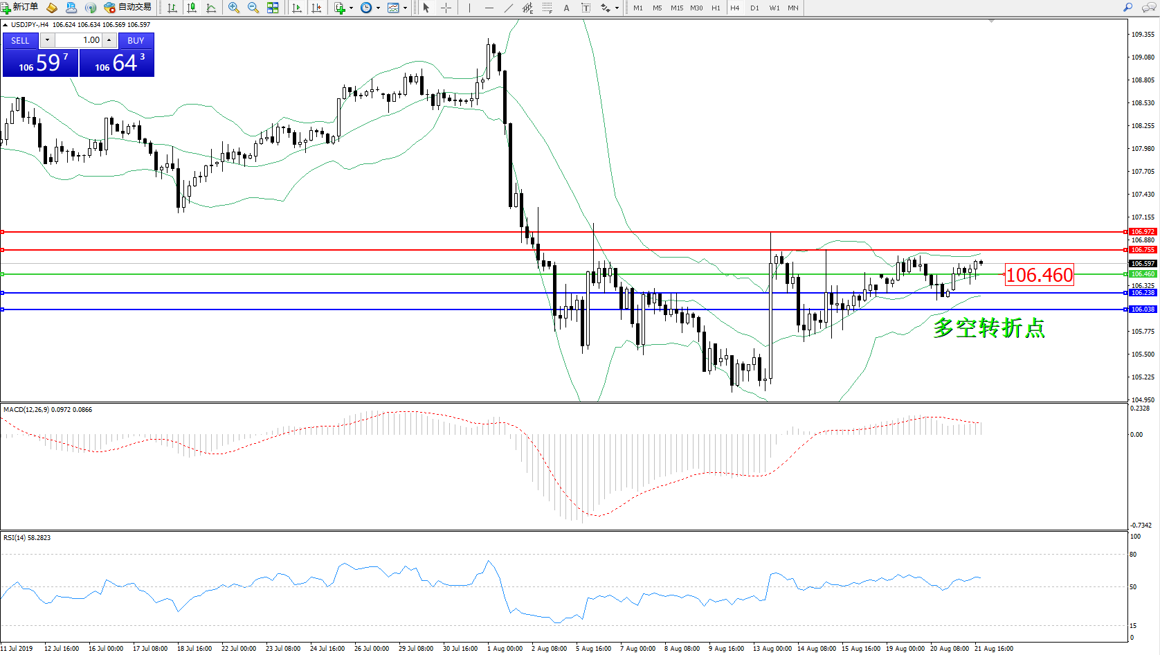 美元兑日元上涨0.2%至106.45附近,日内风险情绪有所好转,欧洲股市大幅走高,恐慌指数也创近三周新高,日元暂失避险需求。,美国和日本首席谈判代表本周会谈时,将设法缩小彼此贸易分歧,但因双方无法在农业和汽车领域作出让步,有关在9月达成协议的希望正不断消退。当地时间21日,美国贸易代表莱特希泽与日本经济再生大臣茂木敏充将在美国华府展开为期2天的谈判,这是两人本月第2次谈判。