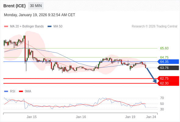 在 64.35 之下,看跌,目标价位为 62.75 ,然后为 62.30 。