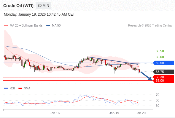 在 59.50 之下,看跌,目标价位为 58.30 ,然后为 58.00 。
