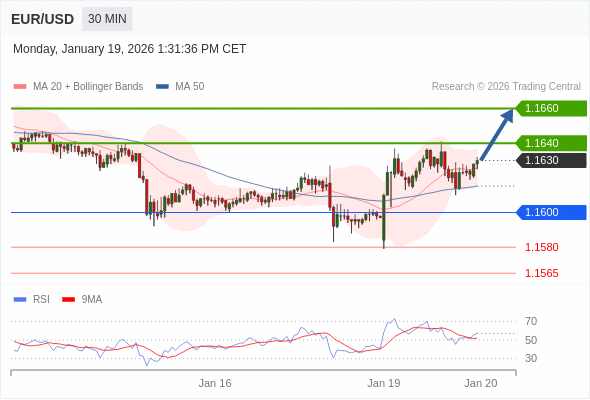 在 1.1600 之上,看涨,目标价位为 1.1640 ,然后为 1.1660 。