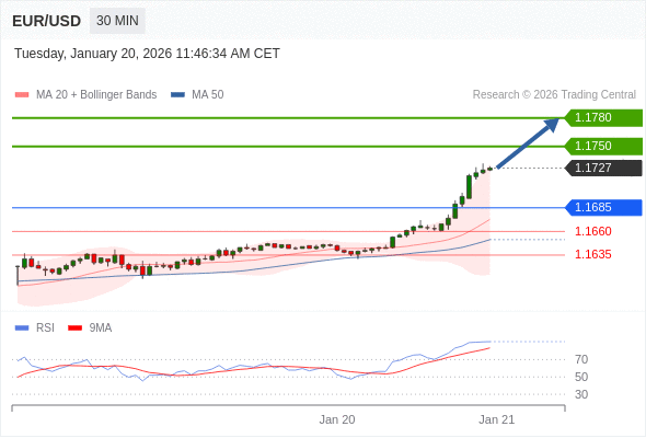 在 1.1685 之上,看涨,目标价位为 1.1750 ,然后为 1.1780 。