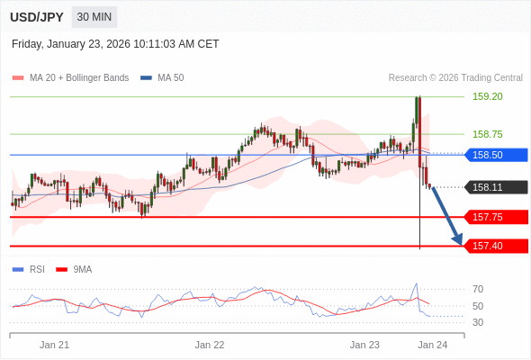 在 158.50 之下,看跌,目标价位为 157.75 ,然后为 157.40 。