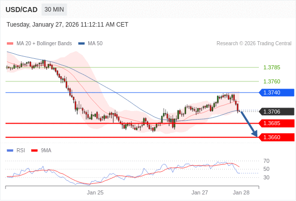 在 1.3740 之下,看跌,目标价位为 1.3685 ,然后为 1.3660 。