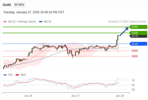黄金现货 当日内: 期待5200。