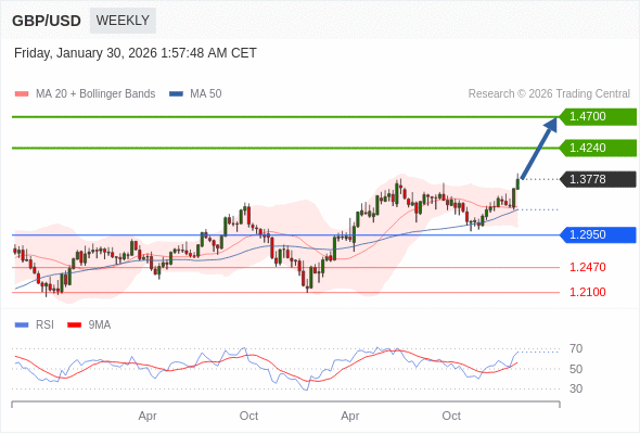 在 1.2950 之上,看涨,目标价位为 1.4240 ,然后为 1.4700 。
