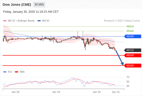 在 49240 之下,看跌,目标价位为 48530 ,然后为 48150 。
