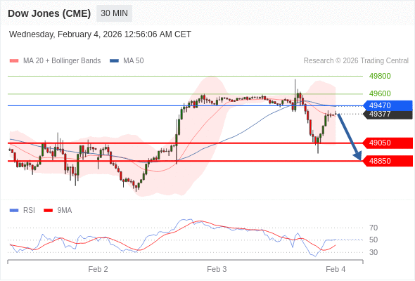 交易策略: 在 49470 之下,看跌,目标价位为 49050 ,然后为 48850 。