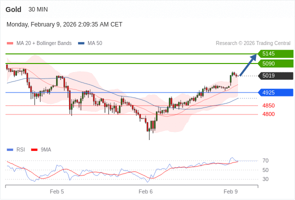 交易策略: 在 4925 之上,看涨,目标价位为 5090 ,然后为 5145 。