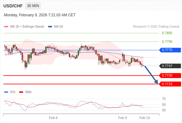 在 0.7775 之下,看跌,目标价位为 0.7730 ,然后为 0.7715 。