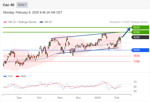 Cac 40 短线: 上升趋势。
