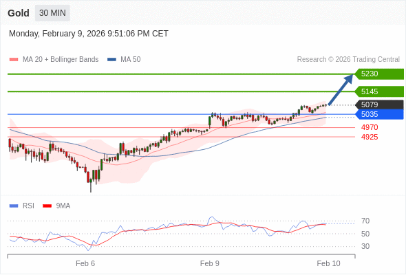 在 5035 之上,看涨,目标价位为 5145 ,然后为 5230 。
