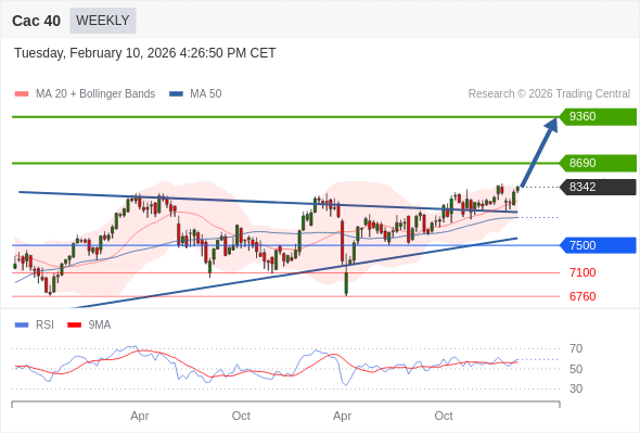 Cac 40 中期: 在7500之上,看涨。