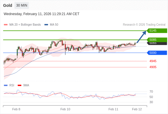 在 5000 之上,看涨,目标价位为 5085 ,然后为 5145 。