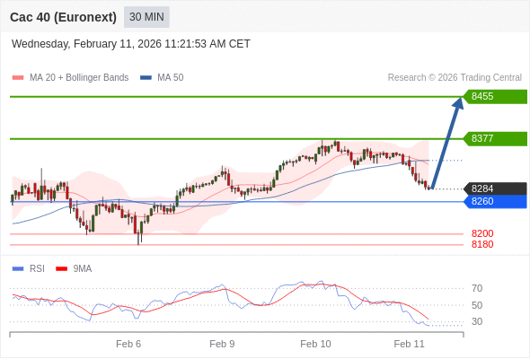 法国CAC指数期货 (Euronext) (G6) 当日内: 超短线(当日内)支撑位在8260附近。