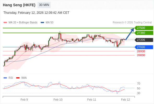 在 27030 之上,看涨,目标价位为 27380 ,然后为 27500 。