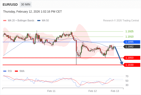 交易策略: 在 1.1895 之下,看跌,目标价位为 1.1850 ,然后为 1.1830 。