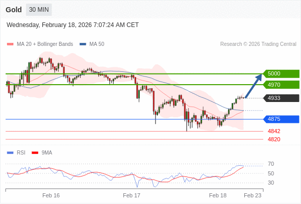 在 4875 之上,看涨,目标价位为 4970 ,然后为 5000 。