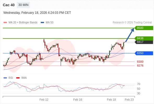 Cac 40 当日内: 在8350之上,看涨。