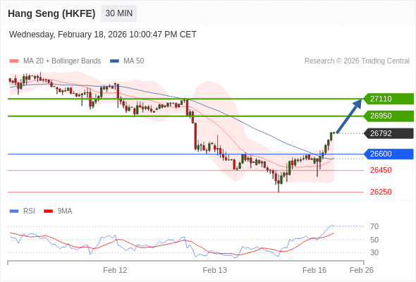 在 26600 之上,看涨,目标价位为 26950 ,然后为 27110 。