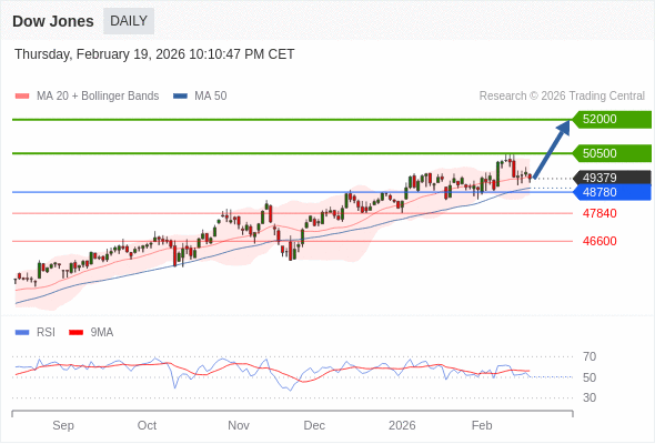 Dow Jones 短线: 在48780之上,看涨。
