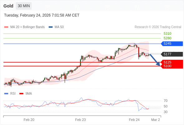 在 5245 之下,看跌,目标价位为 5125 ,然后为 5100 。