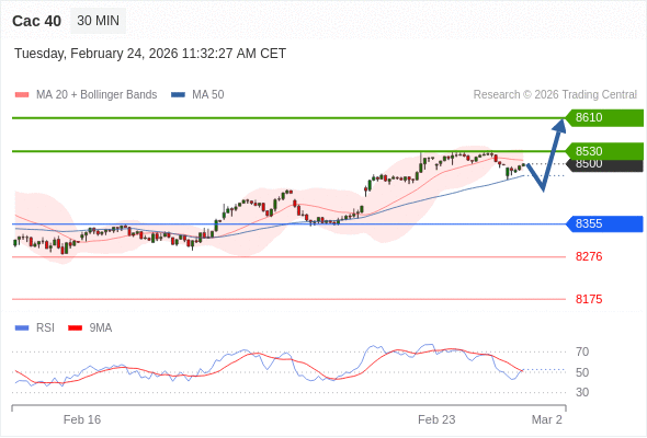 Cac 40 当日内: 上升趋势。