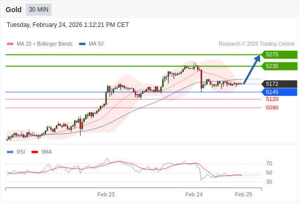 在 5145 之上,看涨,目标价位为 5235 ,然后为 5275 。