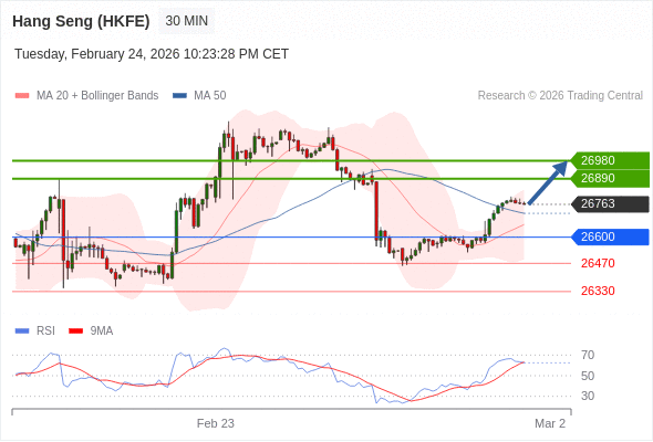 香港恒生指数期货 当日内: 期待26890。
