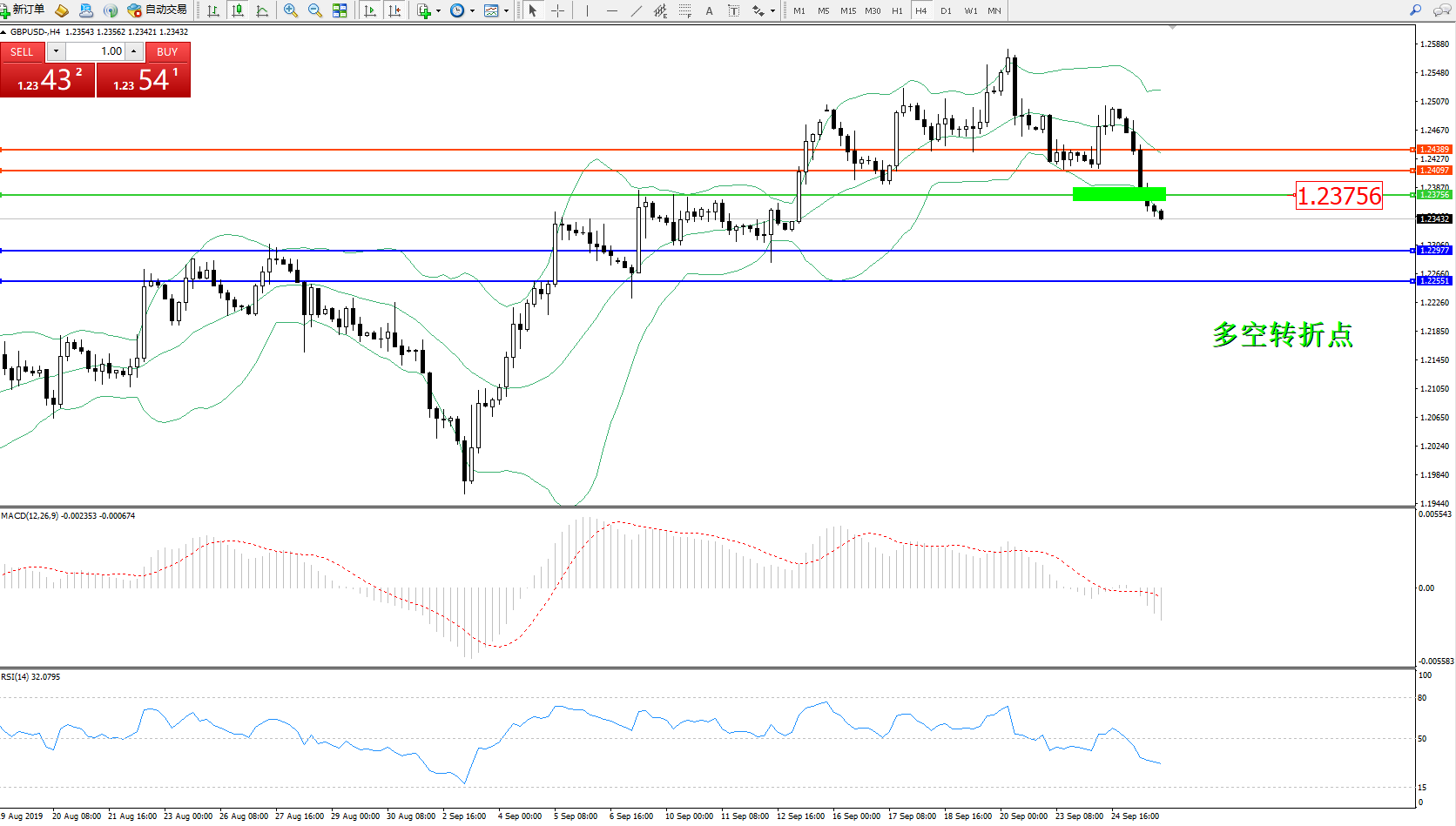 交易策略:1.23756下方看跌,目标1.22977、1.22551