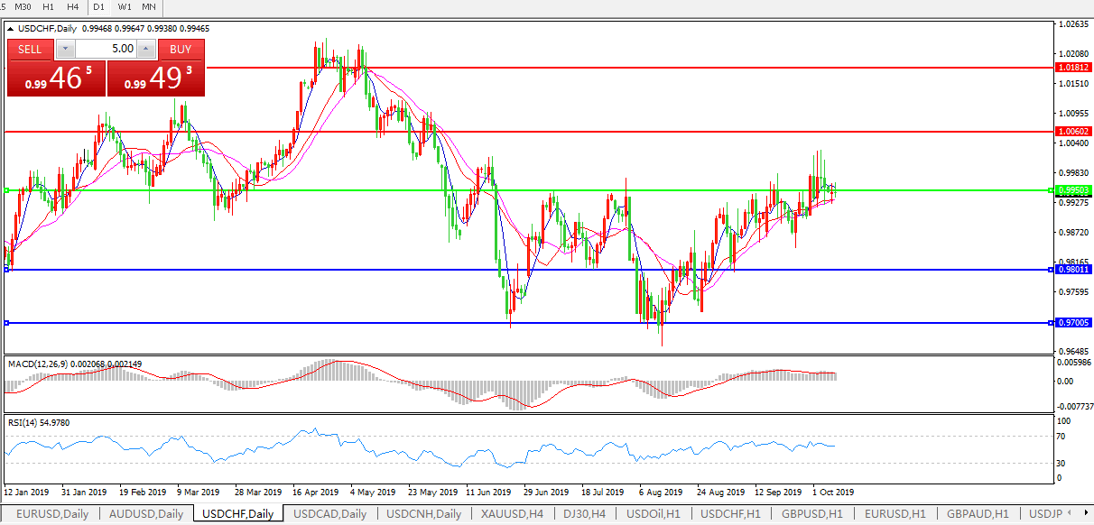 美元指数在欧市早盘重新走高,触及日高98.99,与此同时除了日元和瑞郎之外的风险系非美货币则普遍承压。在基本消化了上周美国非农就业数据的影响之后,市场仍然选择了继续看多美元,因在全球经济前景低迷,贸易风险犹存,而欧洲市场更是面临英国脱欧不确定性冲击的背景下,国际资金反而视美国市场为重要避风港。在美元坚挺的打压下,现货黄金也失去上攻动能,勉强守在1500美元关口。市场对美联储10月降息预期有所降温,并更加关注欧洲央行的进一步宽松行动,如此情绪令美元汇价足以持续居高不下。