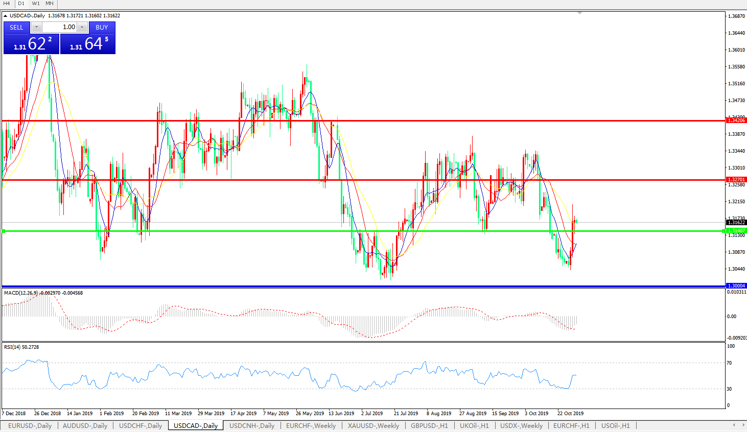 美元兑加元USDCAD    日线图: