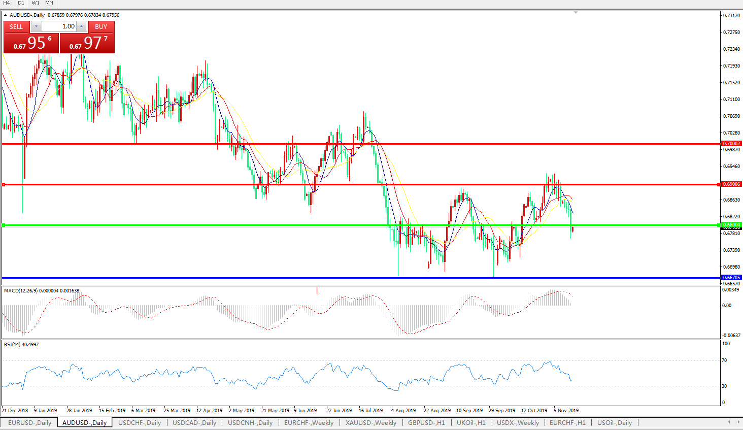东京三菱日联银行周四讨论了澳元前景,标记在澳洲联储宽松的预期下澳元存在进一步下滑的空间;继10月澳洲就业新增弱于预期后,本交易日亚市澳元表现欠佳,澳元兑美元大幅下跌破位0.6800关口,扭转了此前因建立在贸易乐观情绪上的舒缓反弹; 最近的劳动力市场报告揭示澳大利亚经济10月就业新增拂去1.9万,刷2016年9月来最低读数,失业率较澳洲联储预测的4.5%水平缓慢升至5.3%在汇价无法升破200日MA均线阻力位0.6940之后此前的舒缓反弹已经动能耗尽,这一走势符合我方预测的当澳洲联储进一步迈向非传统型宽松之际澳元维持下行风险的观点; 当前澳联储在传统型宽松领域空间鲜少,今年迄今澳洲联储已经降息75个点至0.75%,自此以后澳元利率市场在今晚疲弱数据公布后对明年初降息25个点的定价已经100%。