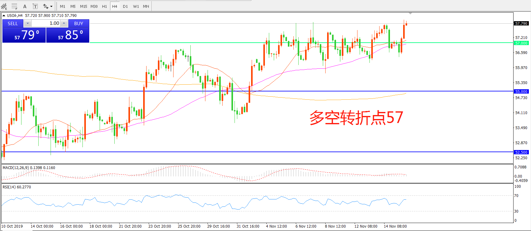 多空转折点:57.00
