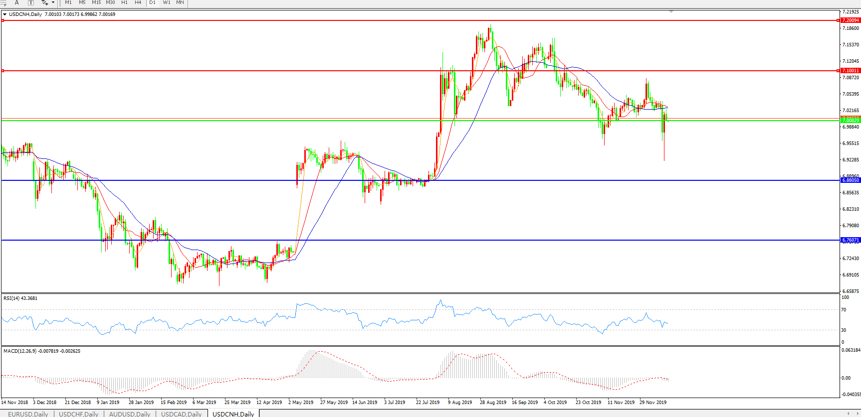 交易策略: 在7.0000之下,看跌,目标价位为6.8805,然后为6.7600。