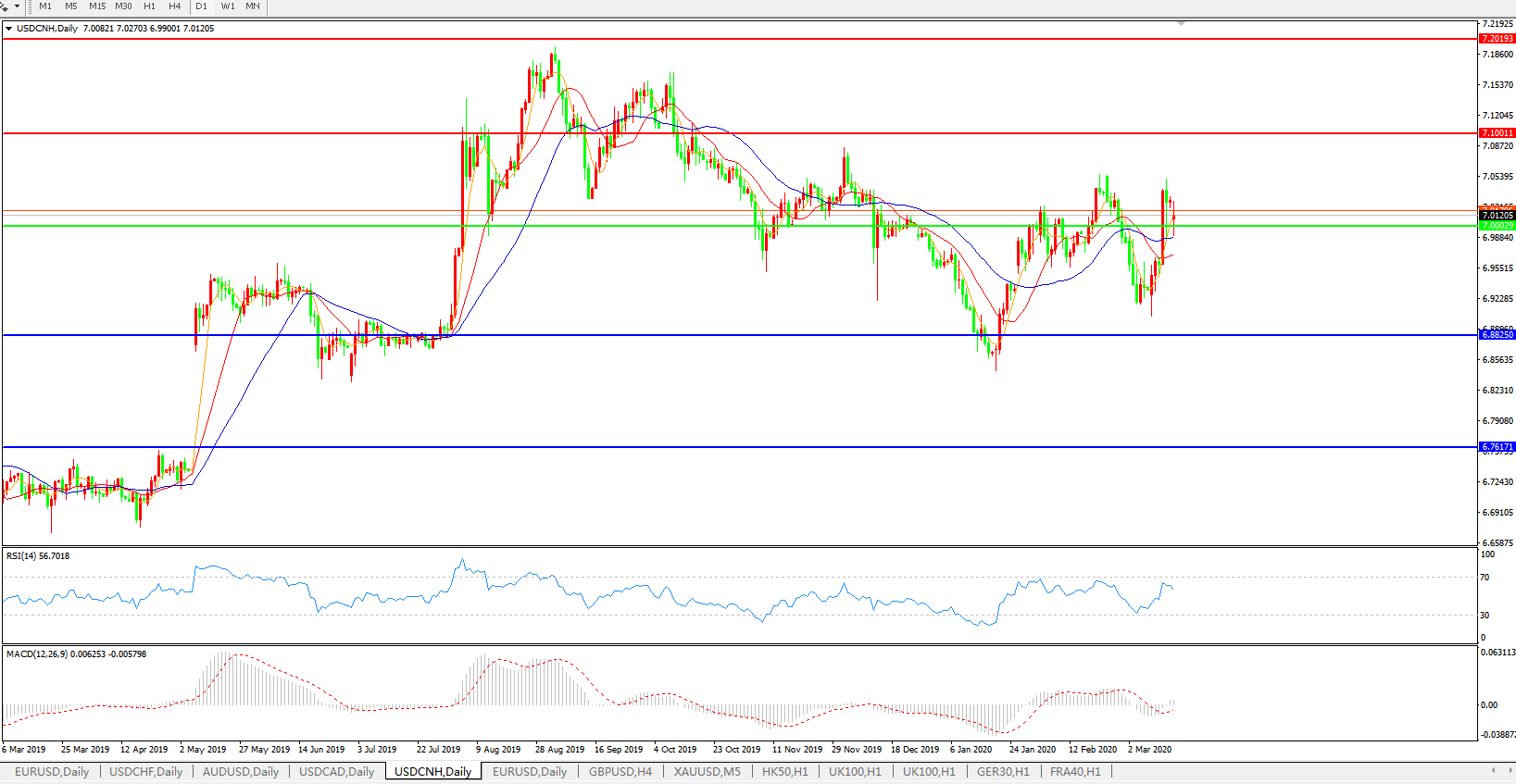 美元兑人民币USDCNH 日线图: