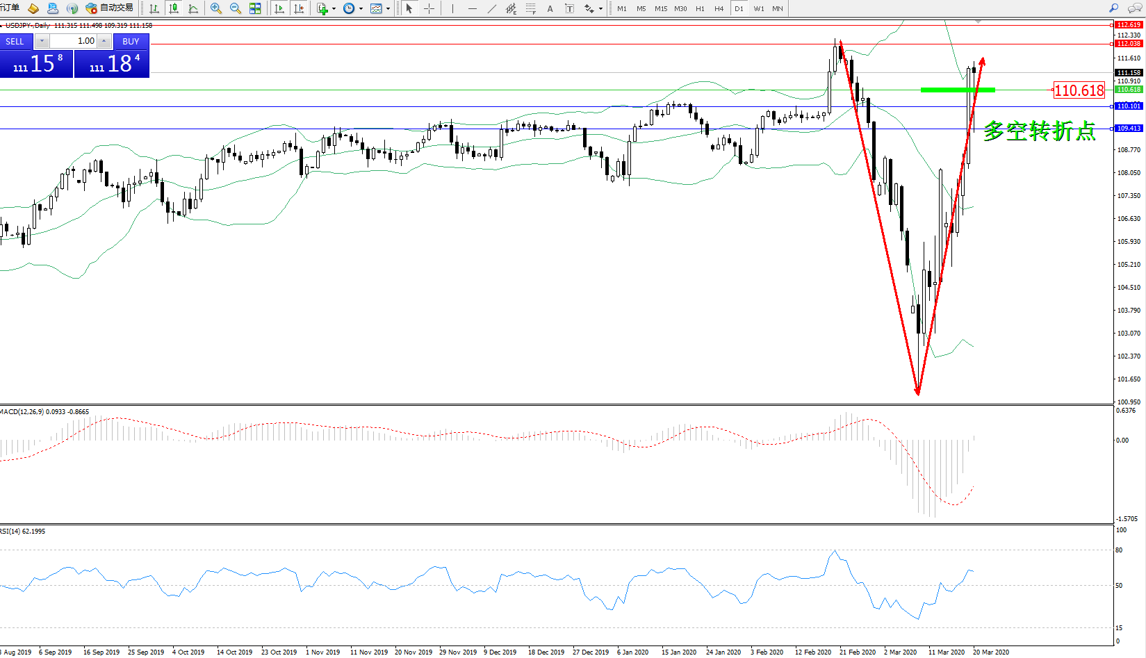 多空转折点:110.618