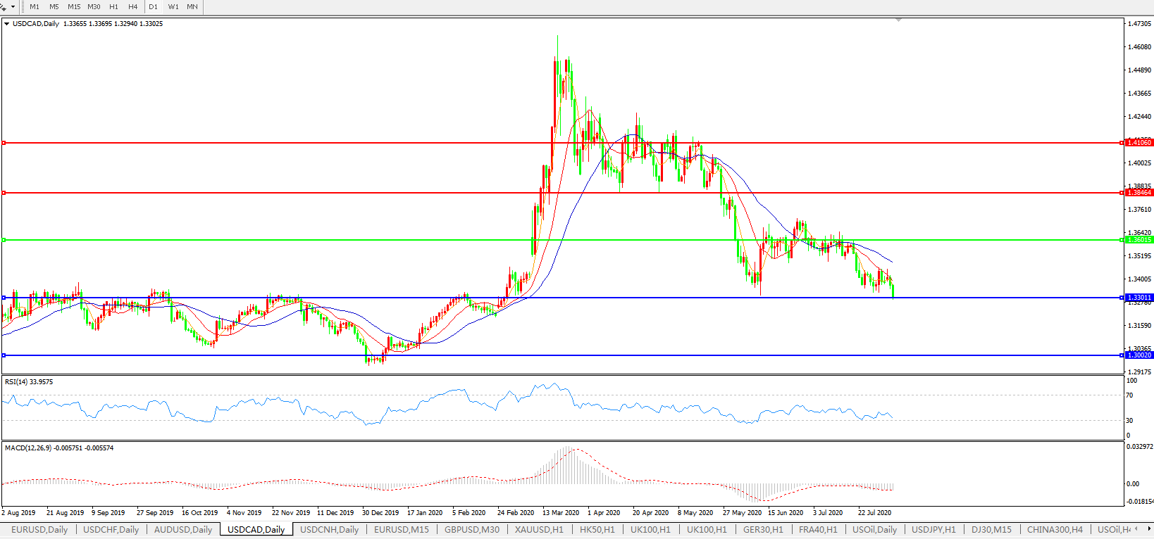 美元兑加元USDCAD    日线图: