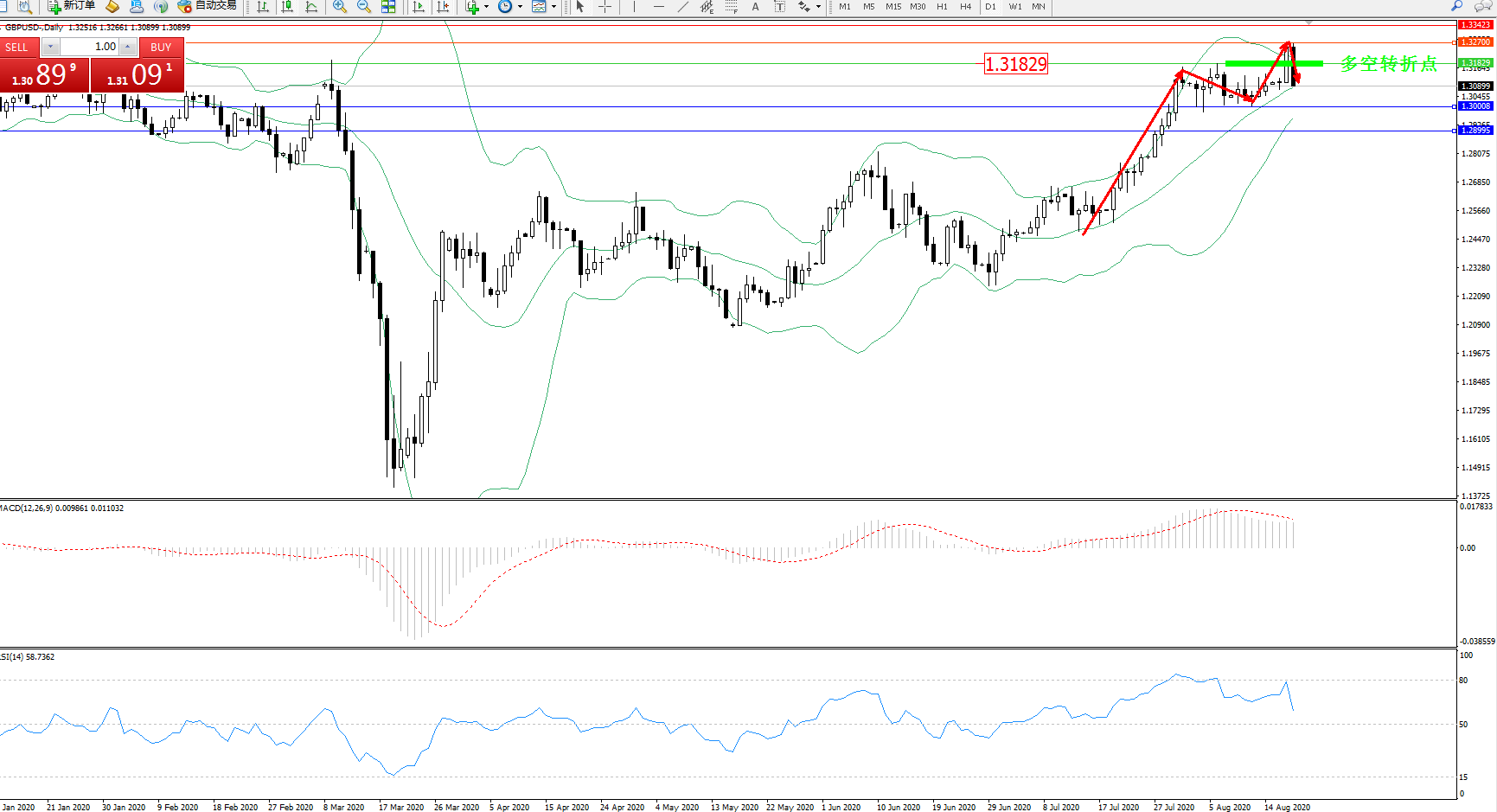 交易策略:1.31829下方看跌,目标1.30008、1.28995