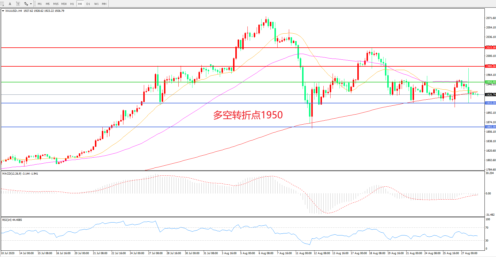 现货黄金XAU/USD    4小时图