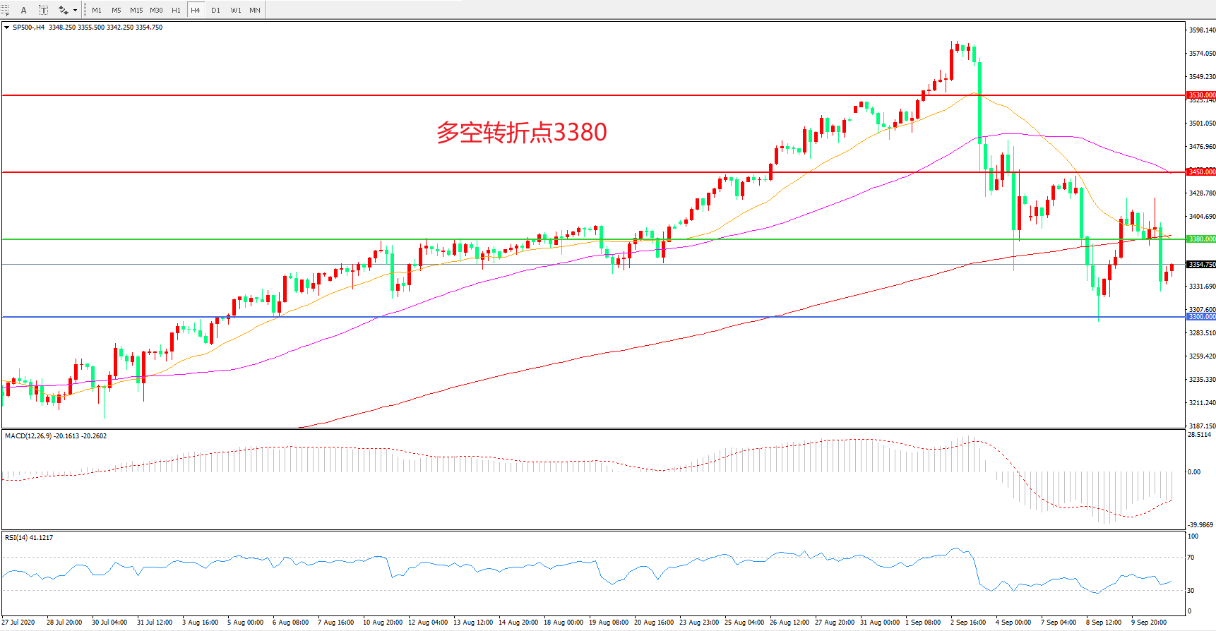 多空转折点:3380.00