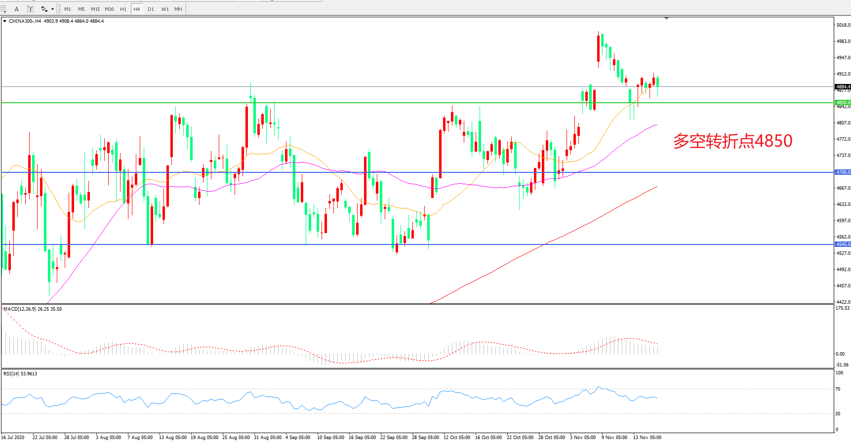 交易策略:在4850.00之上看涨,目标5000.00       5150.00