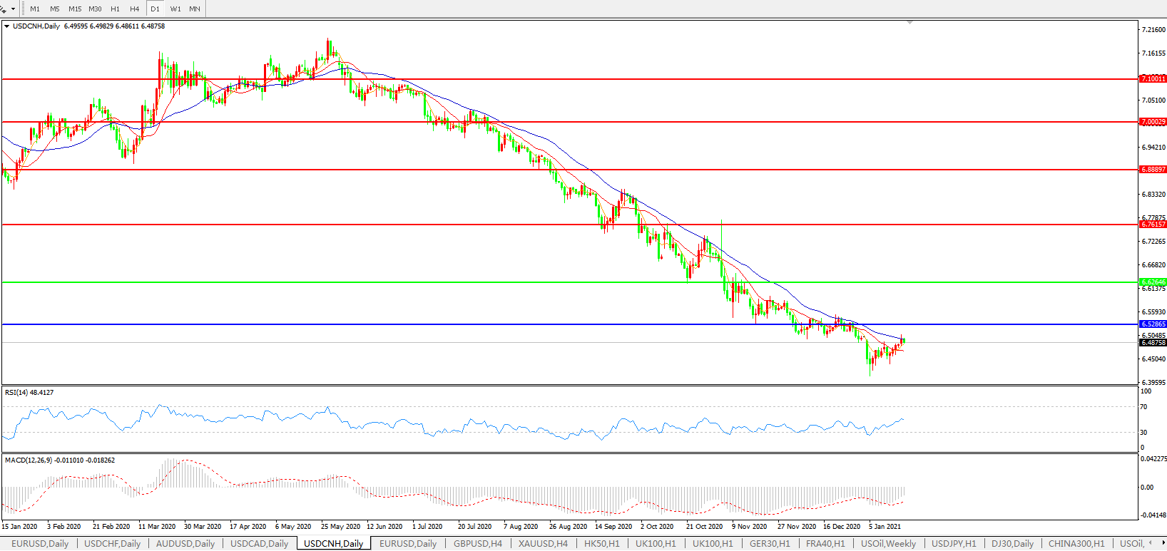 交易策略: 在6.6265之下,看跌,目标价位为6.5286,然后为6.3500。